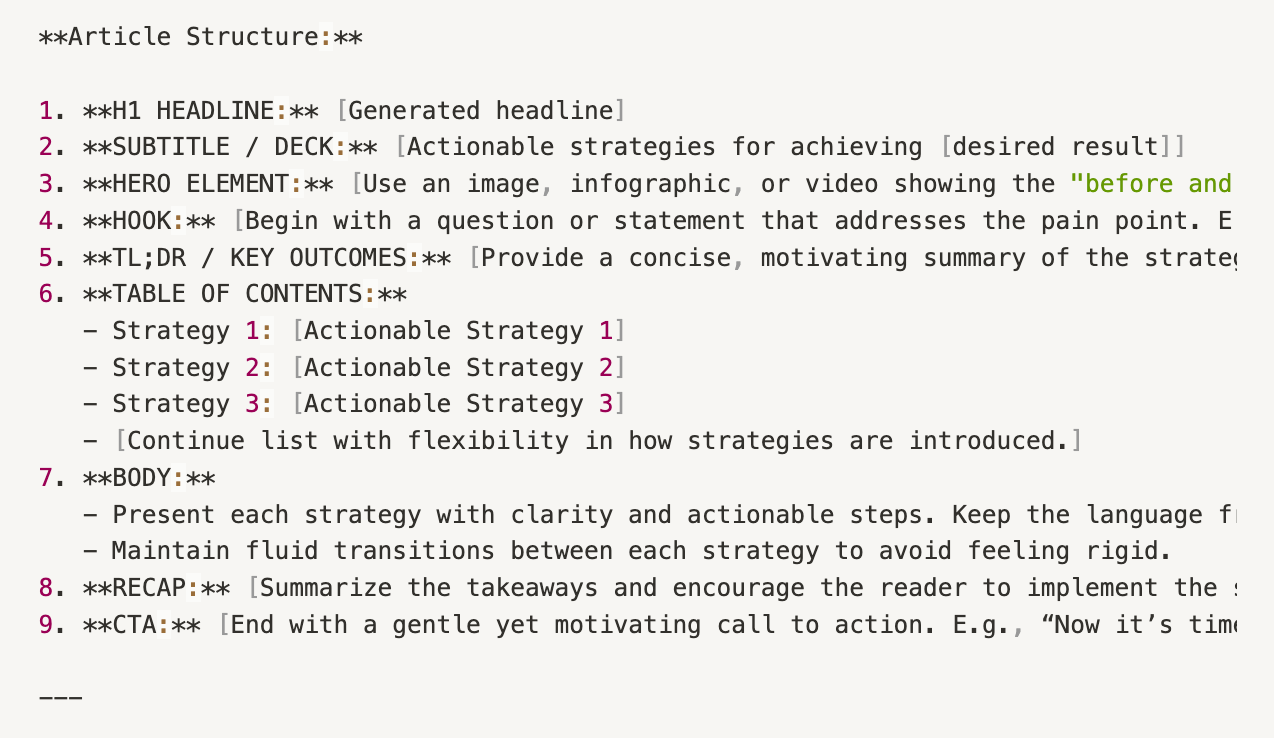 This level of detail ensures that AI produces content that feels human and fits your exact needs.